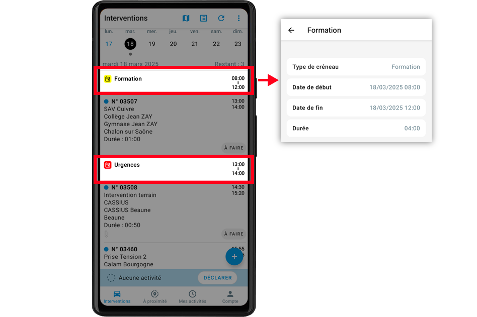 Affichez les créneaux de disponibilité et d'indisponibilité sur le planning mobile de vos techniciens