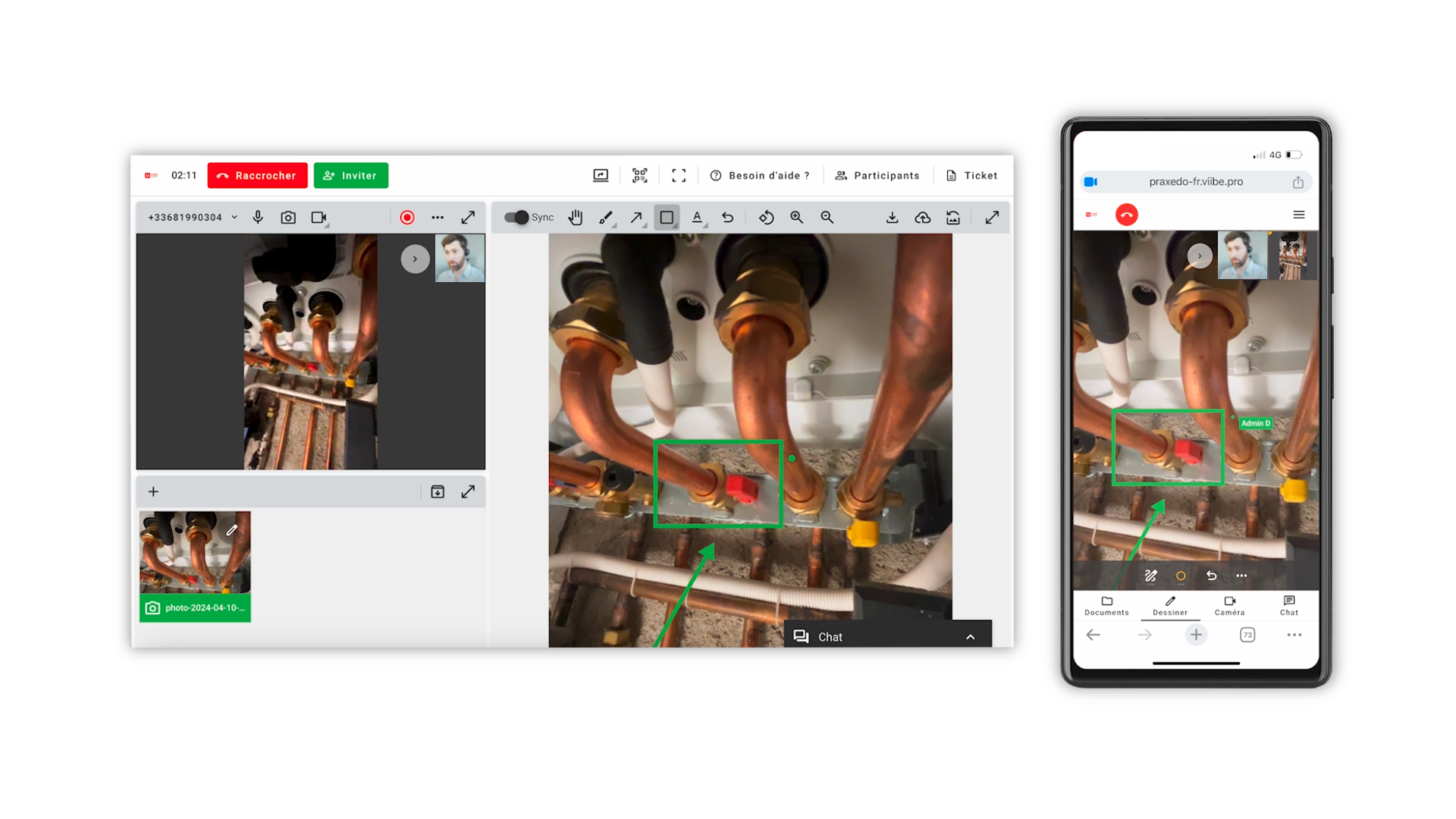 Une solution de visio-assistance intégrée à Praxedo pour augmenter le taux de résolution de vos intervention à la première visite et réduire vos déplacements.